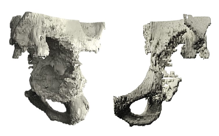 Alternatives developed over the past decades consist of reconstructions using porous metals that promote bone ingrowth or ongrowth. The literature on this topic is sparse and any published case series has a limited follow-up period, usually under 5 years, and low case numbers [1], Aprato A, Giachino M, Bedino P, Mellano D, Piana R, Massè A. Management of Paprosky type three B acetabular defects by custom-made components: early results. Int Orthop. 2019;43(1):117-122. doi:10.1007/s00264-018-4203-5[2], Burastero G, Cavagnaro L, Chiarlone F, et al. Clinical study of outcomes after revision surgery using porous titanium custom-made implants for severe acetabular septic bone defects. Int Orthop. 2020;44(10):1957-1964. doi:10.1007/s00264-020-04623-9[3], Gruber MS, Jesenko M, Burghuber J, Hochreiter J, Ritschl P, Ortmaier R. Functional and radiological outcomes after treatment with custom-made acetabular components in patients with Paprosky type 3 acetabular defects: short-term results. BMC Musculoskelet Disord. 2020;21(1):835. doi:10.1186/s12891-020-03851-9[4] Perticarini L, Rossi SMP, Benazzo F. Trabecular titanium tailored implants in complex acetabular revision surgeries: our experience at minimum 3 years follow-up. J Biol Regul Homeost Agents. 2020;34(5 Suppl. 1):45-49. IORS Special Issue on Orthopedics..
