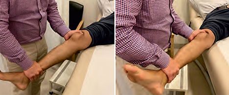 The patient is placed supine on the table with knee in 45 degrees of flexion. In one hand the examiner holds the tibia in external rotation , and with the other hand he applies a valgus force at the knee. The knee is gently extended and the leg is allowed to drift into internal rotation . At about 20 degrees of knee flexion the tibia subluxates anterolaterally with a clunk. The clunk is perceived by the examiner whereas the patient perceives it as an episode of instability.