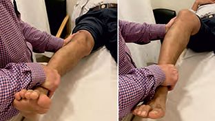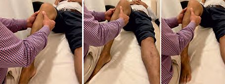 The patient lies comfortably in supine position. The examiner holds the tibia in neutral rotation in 15 degrees of knee flexion . In an ACL deficient knee this allows the femur to sag posteriorly as compared to tibia and externally rotate. Now hold the leg with the other hand and gently flex the knee. As the knee flexion reaches around 40 degrees of flexion the tibia reduces on the femur along with internal rotation of the femur. Gently flexing & extending the knee through range of motion the examiner can elicit the subluxation/reduction & rotation of the tibia and the femur.
