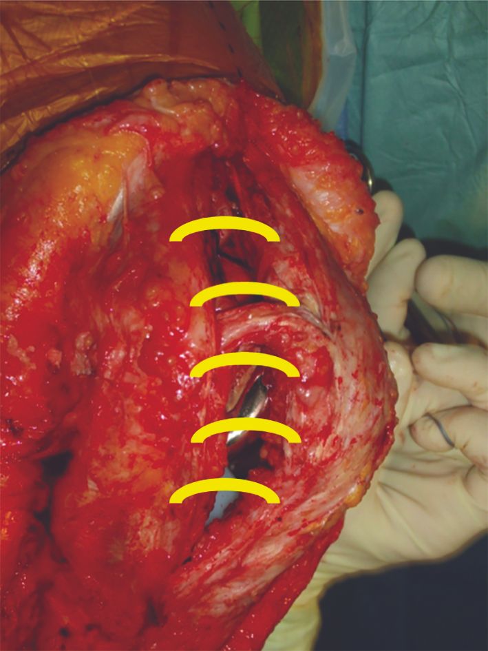 The medial peripatellar structures help stabilize the patella, especially the medial patellofemoral ligament (MPFL), which accounts for 50–60% of the medial stabilization when the patellar is forced into the trochlea groove during first 30° of flexion.[12] This ligament is unavoidably cut when using the medial parapatellar capsular incision for the majority of TKAs. In patients with any preoperative valgus the medial approach destabilizes patellar balance even further, since the medial structures are under placed tension.