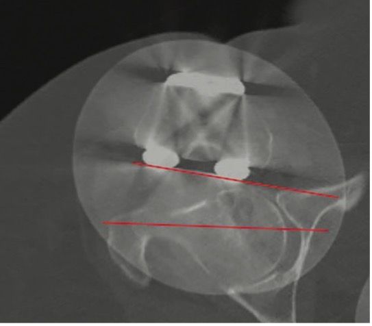 A bilateral CT scan is essential for obtaining official confirmation of rotational problems with the femoral and/or tibial components. In TKA patients with PFI the relevant measurement is the rotational alignment of the components relative to the landmarks of the knee. Malpositioning of the components must be measured by the posterior condylar angle for the femur (posterior condylar line to epicondylar axis) and anterior tibia tubercle angle for the tibia (AP line of tibia surface to TTA – Tibia tubercle to PCL line). The combined internal rotation of the tibia and femur component is directly correlated to the degree of patellofemoral instability (1–4° combined component rotation = lateral tracking and tilting; 4–8° = subluxation; >8° = early patellar dislocation with risk of loosening).[11]