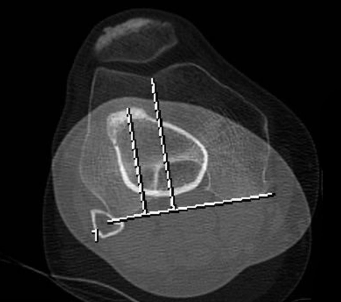 This TT-PCL distance is measured as the mediolateral distance between the midpoint of the insertion of the patellar tendon and the medial border of the tibial PCL attachment.
