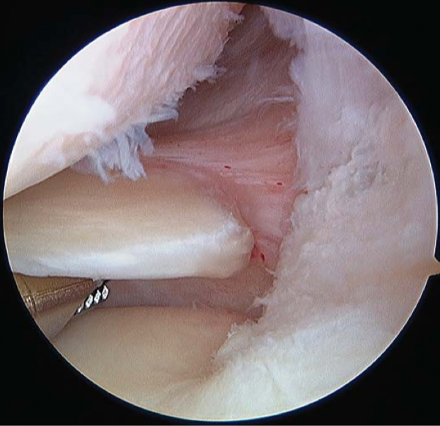 Meniscal root injuries also play a role in the rotational instability of the knee, in particular external meniscal root injuries (35,36). The prevalence of external meniscus root injuries ranges from 6.6%– 13.5% (30,37). These injuries should be diagnosed and treated simultaneously (Figure 8).