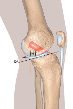 The first association was made between high posterior tibial slope and ACL congenital absence [1]. A series of 8 ACL congenital deficient knees showed a mean posterior tibial slope of 20,6° [2]. It was then showed that when the PTS is increased, anterior tibial translation is increased in ACL deficient knees [3] (Figure 1A & B).
