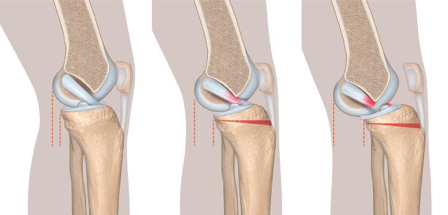 This statement is also valid with dog ACL tear. Slocum and Slocum published their results in 1993 [4] and it has become a standard procedure in veterinary surgery since then. The influence of the tibial slope in knee biomechanics has been well investigated so far. In 2014, Marouane et al. showed that an increased posterior tibial slope caused a substantial increase in anterior tibial translation and the sagittal forces on the ACL [5]. This effect is reversed if the posterior tibial slope is decreased. It has ben showed that anterior tibial translation and forces acting on the ACL were higher in activity involving compression forces especially standing and walking [6].