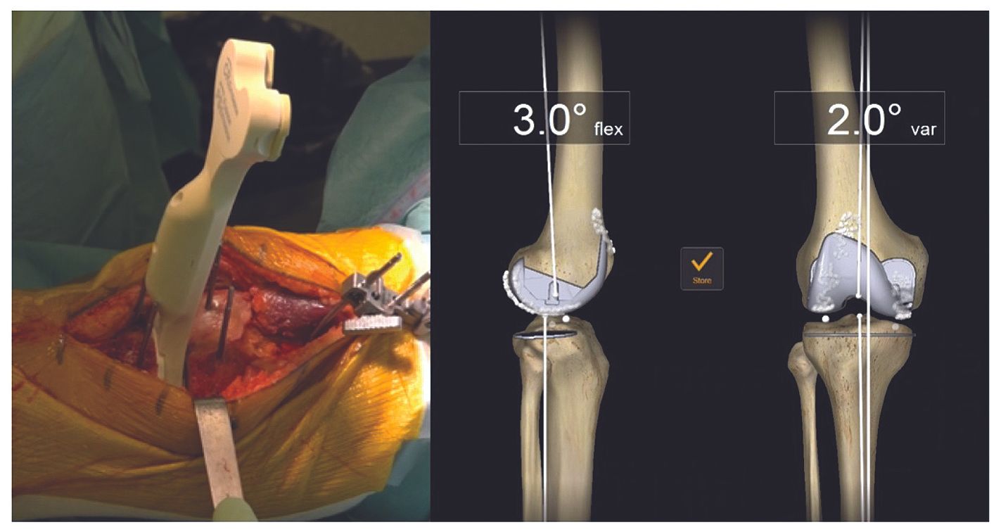 Computer-assisted total knee arthroplasty has for many years been the gold standard for some surgeons because the software can plan the cut and predict the outcome in terms of axis and stability. Furthermore during the actual surgery it can monitor the quality of the procedure, the axis and the ligament balance. Modern navigation tools remove the need for a rigid workflow and can be adapted to individual set the axis and stability goals determined by the surgeon. The procedure can therefore be fully customised to suit the patient’s features and the surgeon's goals.