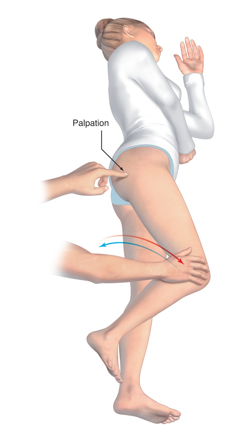 The second manoeuvre represents an active test of the piriformis muscle. The patient is positioned in lateral decubitus, lying on the healthy side. The patient is asked to abduct and external rotate the hip whilst the examiner places resistance on the lateral knee [7] (Fig. 2).