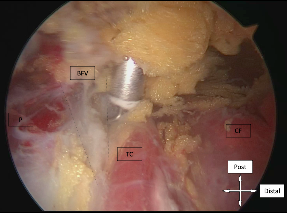 The pelvitrochanteric muscles are gradually exposed by extending the arthroscopic dissection medially [19] (Figs. 7 & 8).