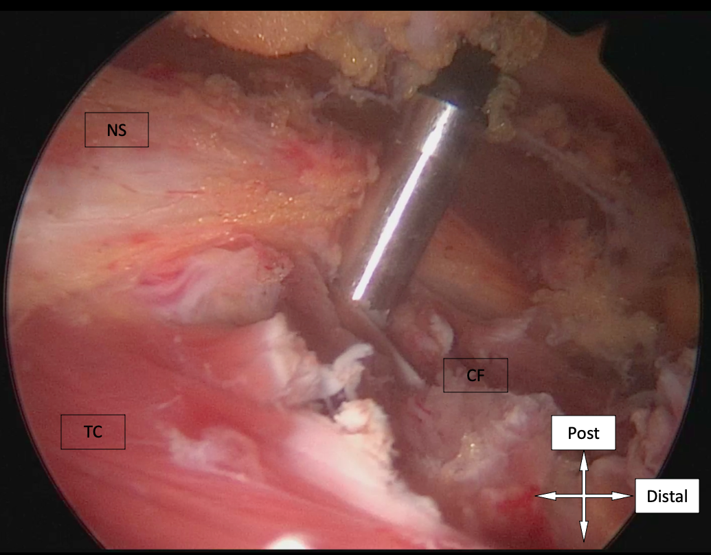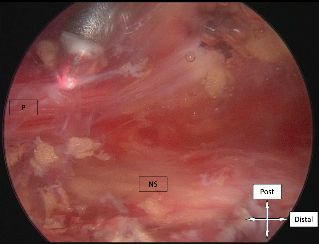 Endoscopic nerve release in addition to piriformis tenotomy