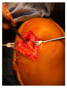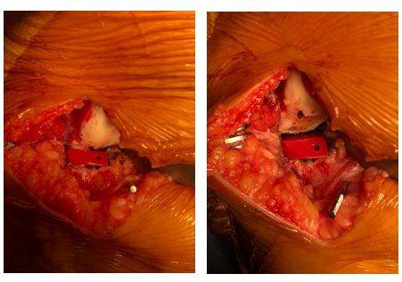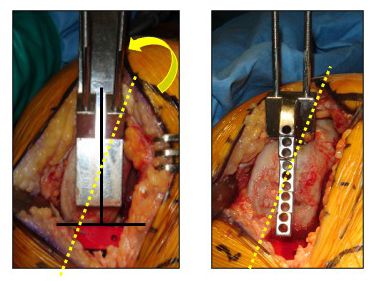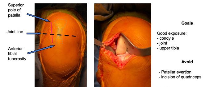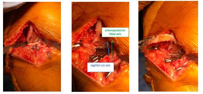 Any soft-tissue release from the tibia should be kept to a minimum including the menisco-tibial ligament only to allow placing of the retractors. No ligament releases are indicated for the IT-band and the posterior-lateral capsule since it could cause overcorrection in the frontal plane.[21] Care should also be taken not to damage the collateral ligaments with the retractors during the procedure.
