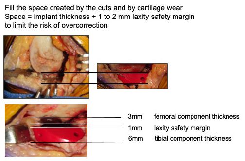 The key to good long-term results is avoiding overcorrection. The final polyethylene insert should therefore be not too thick, with a laxity ‘safety margin’ of 1-2 mm during varus stress in extension. Make a final check for the flexion gap which never should be too tight and can allow a relative instability of 2 to 3 mm to allow lateral roll-back.