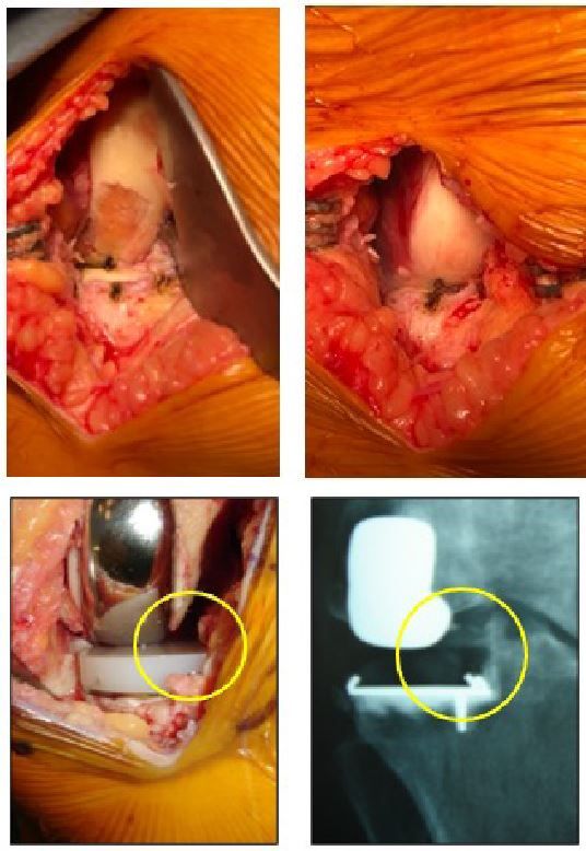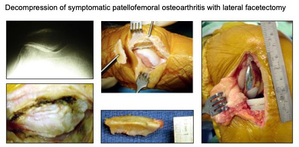 Some authors do not view moderate asymptomatic patellofemoral injury as a strict contraindication. UKA is possible in this situation if the patient is elderly with low functional expectations.[7,15,16] Lateral facetectomy, or patelloplasty with patellar decompression may be offered in addition to UKA to reduce patellofemoral pain (Fig. 4).
