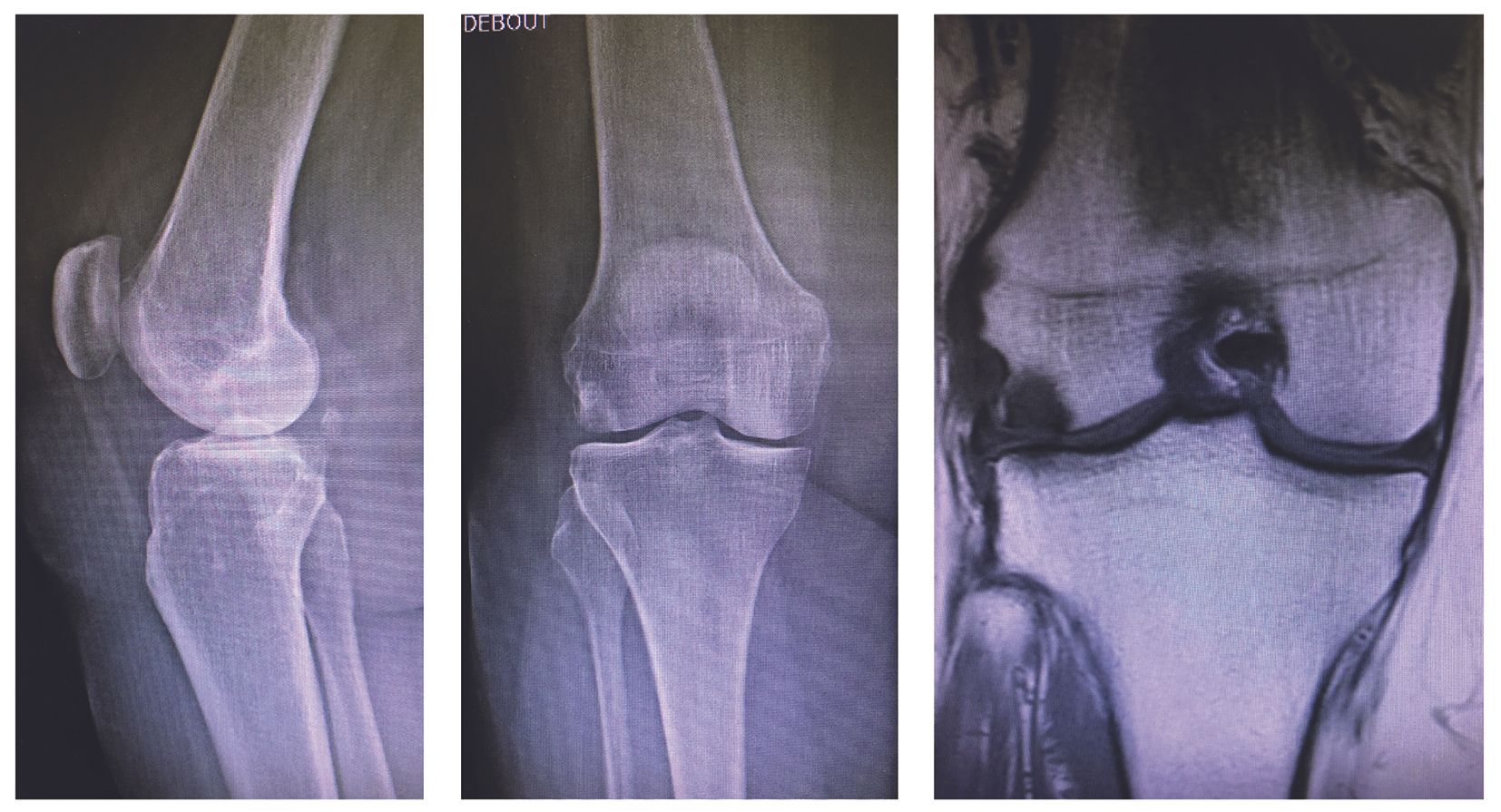 Isolated damage to the lateral tibiofemoral compartment is a determining factor for the indication. In some cases, the special 45° inclined PA view (Rosenberg or Lyon Schuss) will be necessary to identify the OA damage of the posterior femur condyle (Fig. 1). Local osteo-cartilage damage caused by spontaneous osteonecrosis (SPONK) of the lateral condyle is also a good indication (Fig. 2).