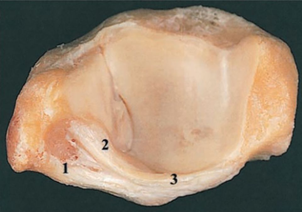 The interosseous ligament (IOL) lies 0.5 to 2 cm above the joint line. The area underneath the interosseous ligament is generally filled with the synovial plica from the tibiotalar joint. [3, 4] The inferior transverse ligament (ITL) forms the most distal aspect of the tibiotalar articulation and functions as a labrum. The PiTFL, like the AiTFL, consists of multiple collagen bundles and fat. Its most distal fibres sometimes seem continuous with the transverse ligament. (Figure 2) [3]