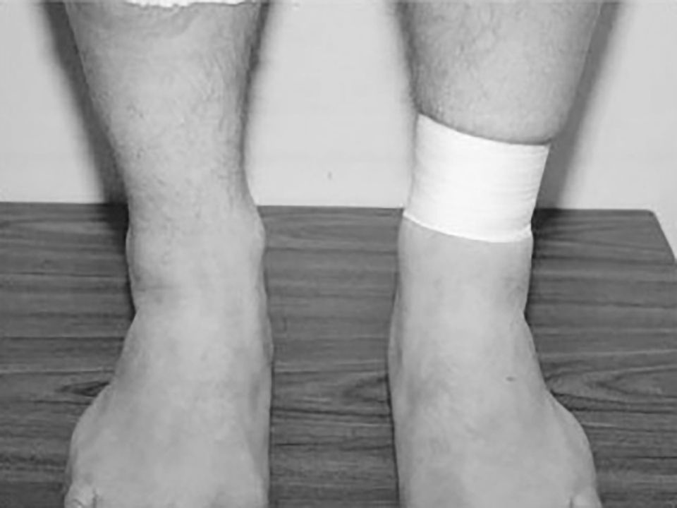 Amendola has described the “stabilization test,” [21] which can be useful to confirm diagnosis during the subacute or chronic phase of injury once acute swelling and pain have subsided. This test is performed by tightly applying several layers of 1.5-in athletic tape just above the ankle joint to stabilize the distal syndesmosis. The patient is then asked to stand, walk, and perform a toe raise and jump. The test result is positive if these maneuvers are less painful after taping.