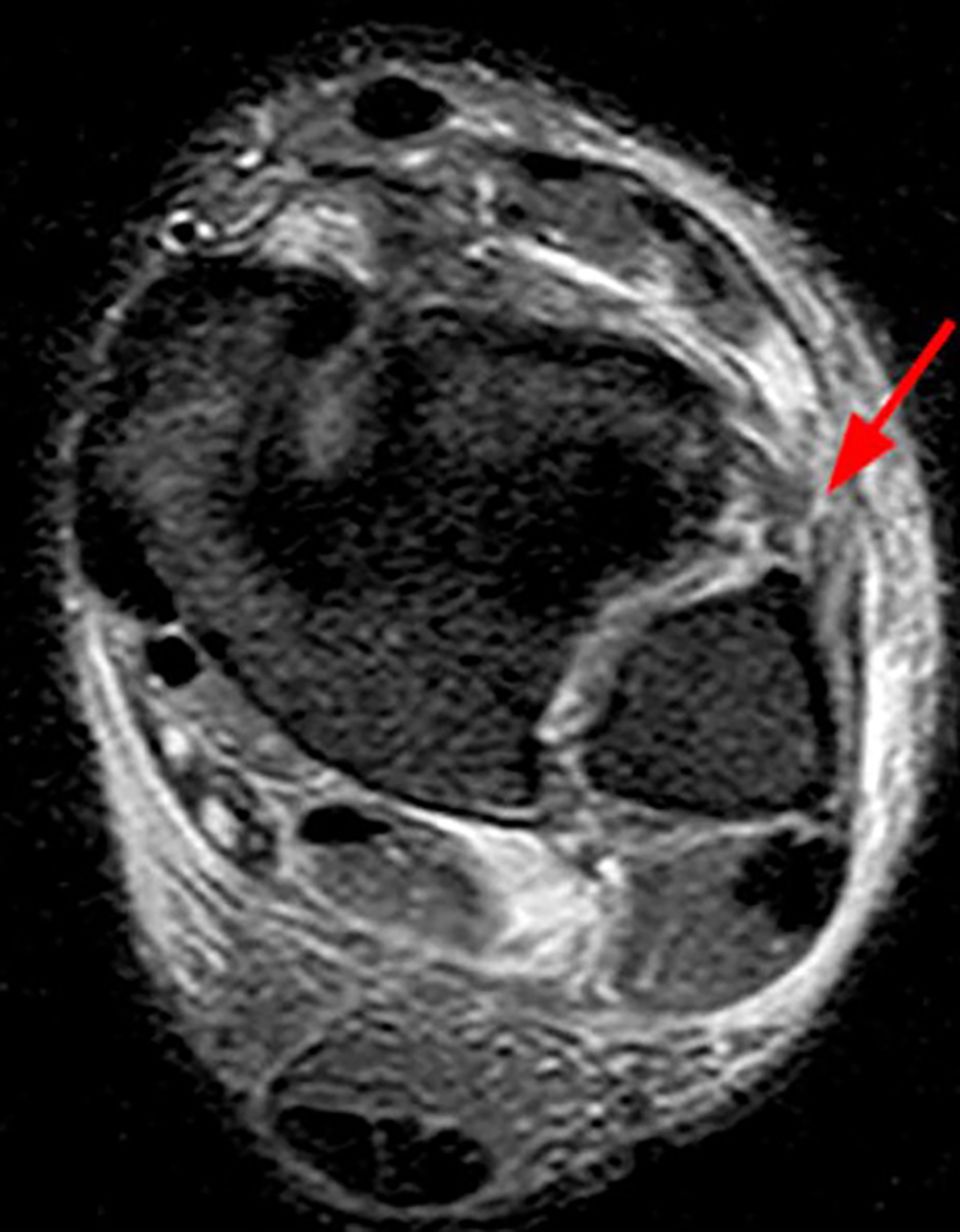 MRI has been shown to effectively display the components of the syndesmotic complex with high interobserver agreement.[29] MRI has 93% specificity and 100% sensitivity for injury of the AiTFL, and 100% specificity and sensitivity for injury of the PiTFL compared with arthroscopy in acute injuries.[30] In diagnostic meta-analysis, the pooled sensitivity and specificity were 0.93 and 0.87 for MRI. [27]