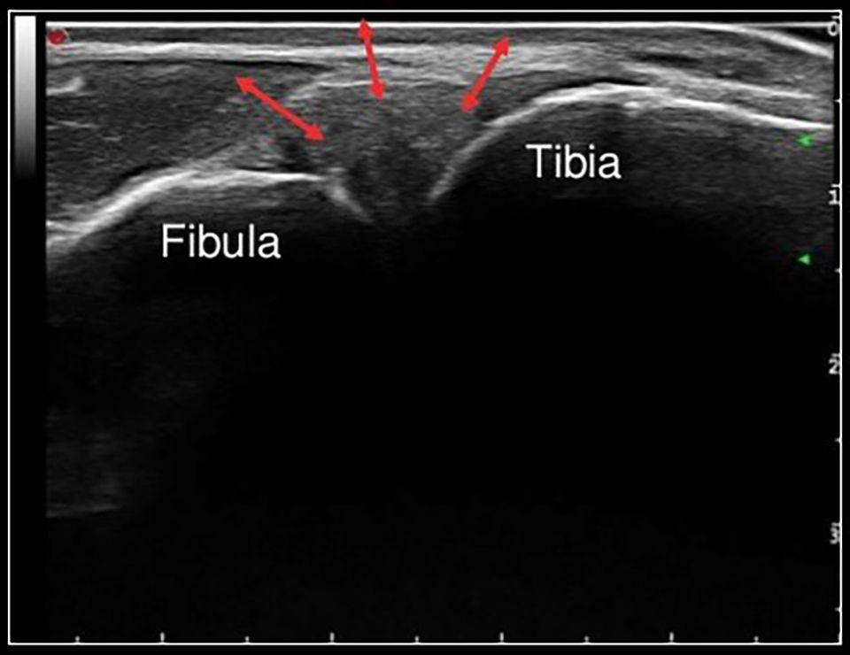 Side to side difference of tibiofibular clear space can be evaluated with ultrasound. Differences were less than 1mm in all positions with high ICC values between ankles in one study. [31] The authors conclude that by using 3D-US, they were able to consistently evaluate the clear space with good reliability. One other study reported a sensitivity of 0.89 and specificity of 0.97 for diagnosing syndesmotic insufficiency. [32]