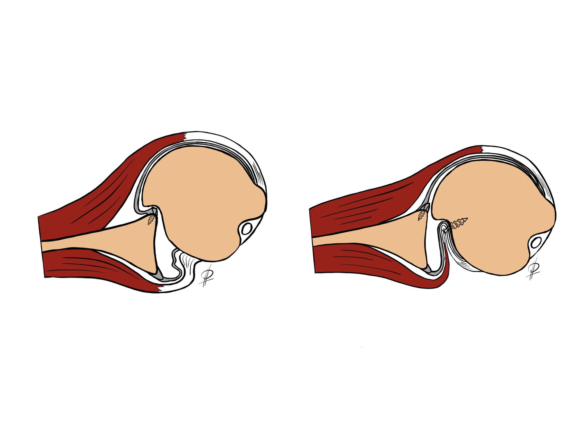 The original technique described suture anchors placed into the valley of the defect, with the suture limbs passed directly posterior. Other authors have proposed a modification with a double-pulley technique [25]. One or two anchors can be used depending on the size of the defect. The anchor(s) can be placed in the middle of the valley or into the rim of subchondral bone adjacent to the articular margin [25]. Presently, there is no standardized technique. In vitro, there is no substantial differences between suture anchors placed into the valley of the Hill-Sachs defect vs those placed into the subchondral rim of the humeral head, but a medial suture placement, by its effect on the capsule and the tendon, can result in joint stiffness