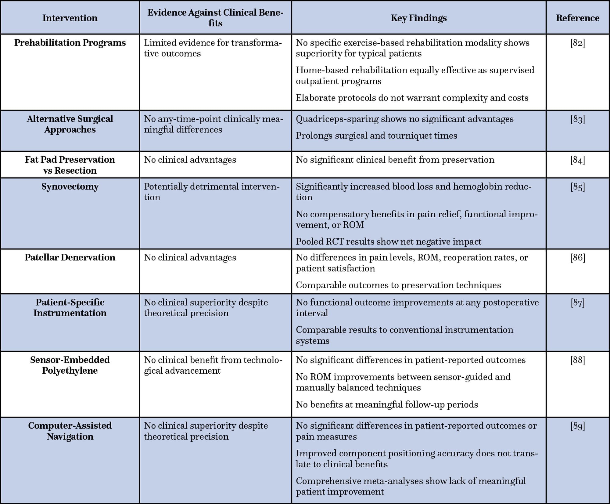 The orthopaedic community actively seeks interventions that could fundamentally transform TKA outcomes—true “game changers” in the field. Identifying genuine game changers requires distinguishing between interventions that provide sustained clinical improvements and those that generate initial enthusiasm but fail to deliver lasting benefits in practice.