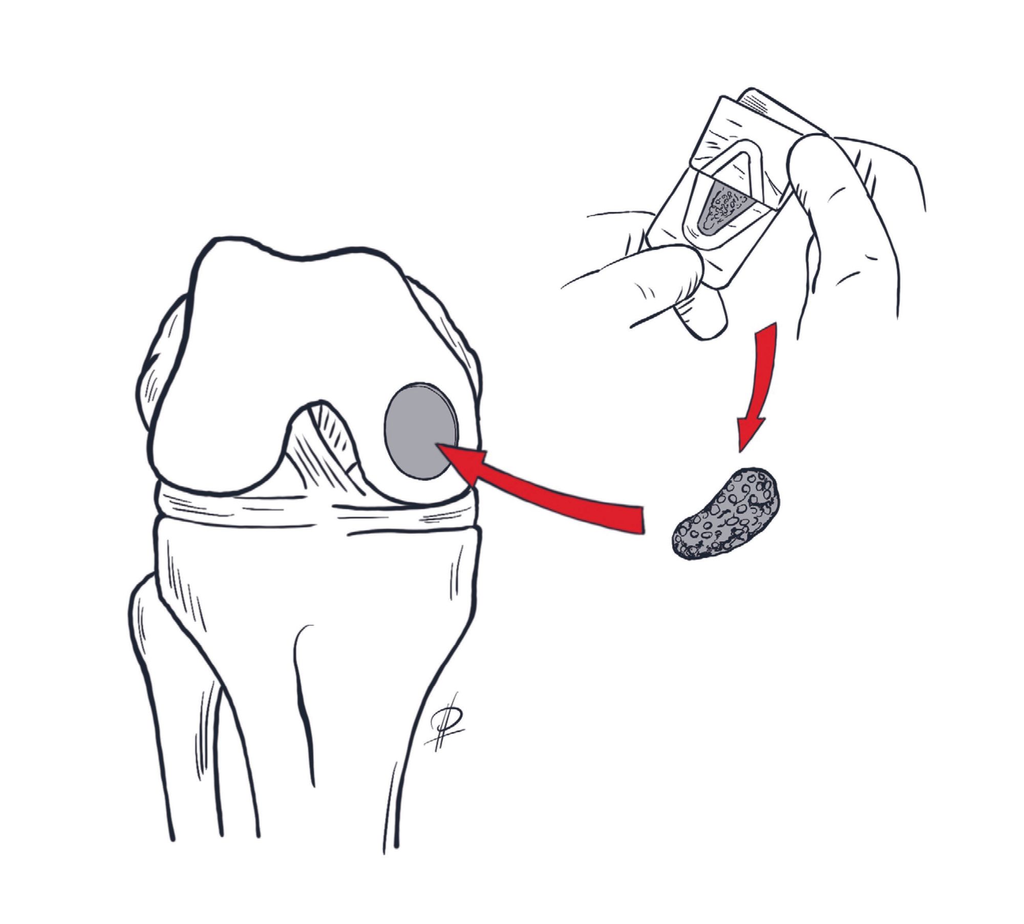 In 1959 Pridie was the first to introduce a technique of subchondral drilling for the treatment of osteoarthritis [Pridie]. Ficat in 1979 described the “Spongialization” in which the cancellous bed was exposed [Ficat] and Johnson & al. described the “abrasion arthroplasty” [Johnson]. Later, in 1997, based on the same concept, Steadman described the arthroscopic marrow stimulation using what he called “microfracture" [Steadman]. Brittberg and Peterson [Brittberg] were the first to publish a case series of cell transplant with autologous chondrocyte implantation (ACI) in 1994. Another technique was proposed by Hangody, the autologous osteochondral transfer (mosaicplasty) for the treatment of larger lesions with multiple small osteochondral cylinder plugs [Hangody 2003].