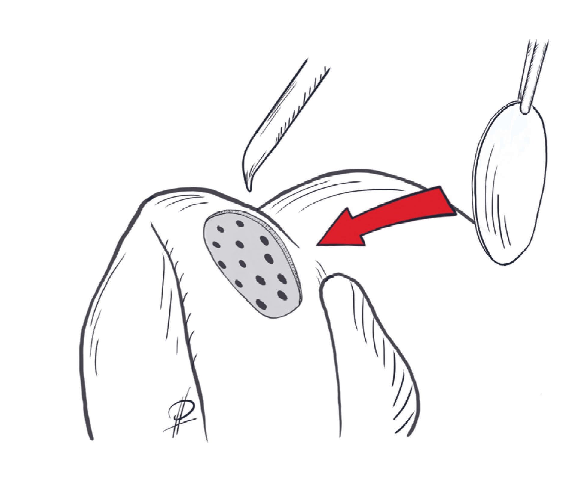 In order to improve the efficiency of the microfracture, augmentation by using scaffold has been proposed. The initial term proposed for this concept was Autologous matrix-induced chondrogenesis (AMIC). It combines microfracture surgery with application of scaffold in order to physically stabilise the clot and enhance the marrow-derived repair [Benthien] (Figure 3).