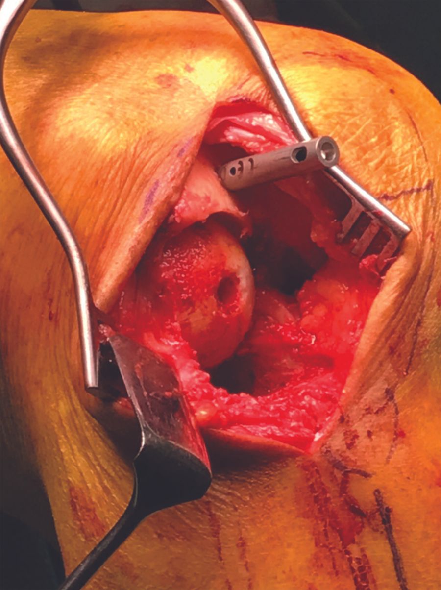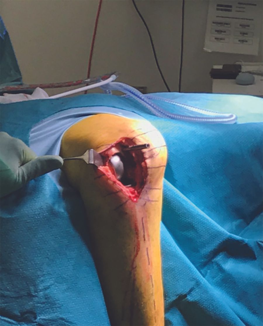 - Incision and joint inspection (figures 3a, 3b)