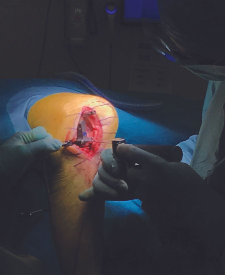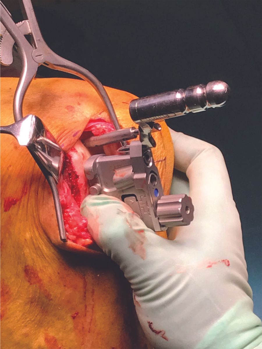 For LUKA surgery I use the Oxford, fixed bearing, lateral partial knee (ZimmerBiomet, Warsaw, IN). The femoral
