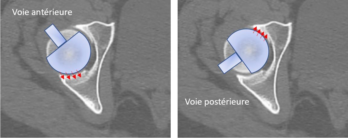 1- For us, careful 2D planning with frontal and side views, or 3D planning, is an indispensable preliminary to any prosthetic hip surgery. The fossa does not form part of the articular area of the hip.