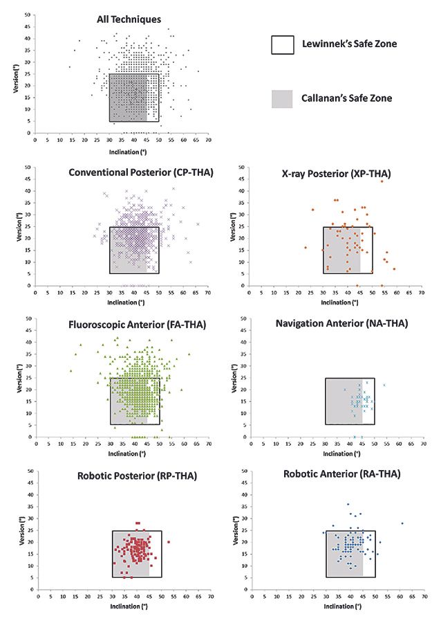 Reviews of navigation data, comparing the Lewinnek safe zone against scan outcomes, show a consistent albeit involuntary tendency to a medial and superior shift in centre of rotation2,3, a surgical issue that existed well before the advent of image-guided techniques and navigation systems.