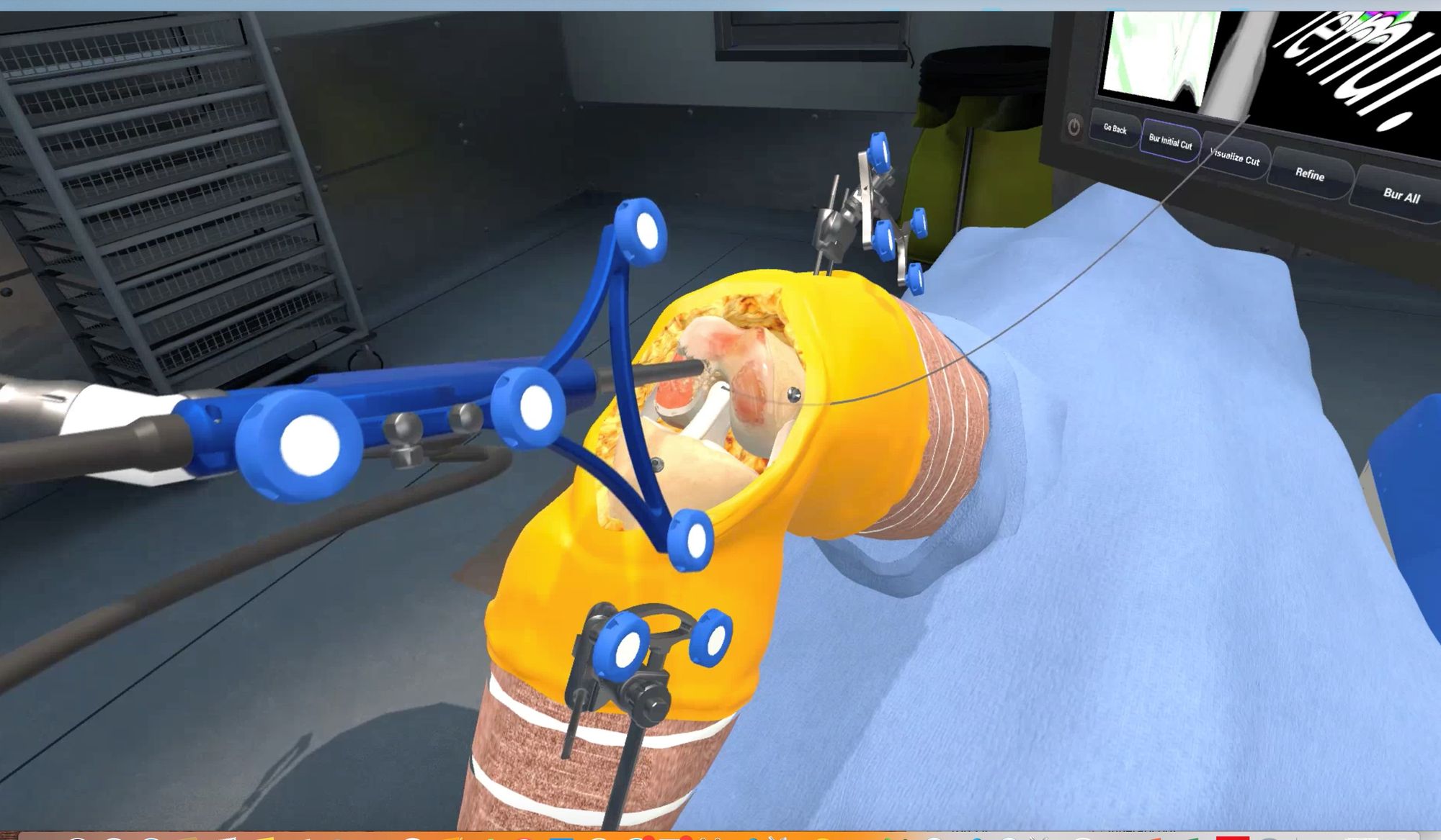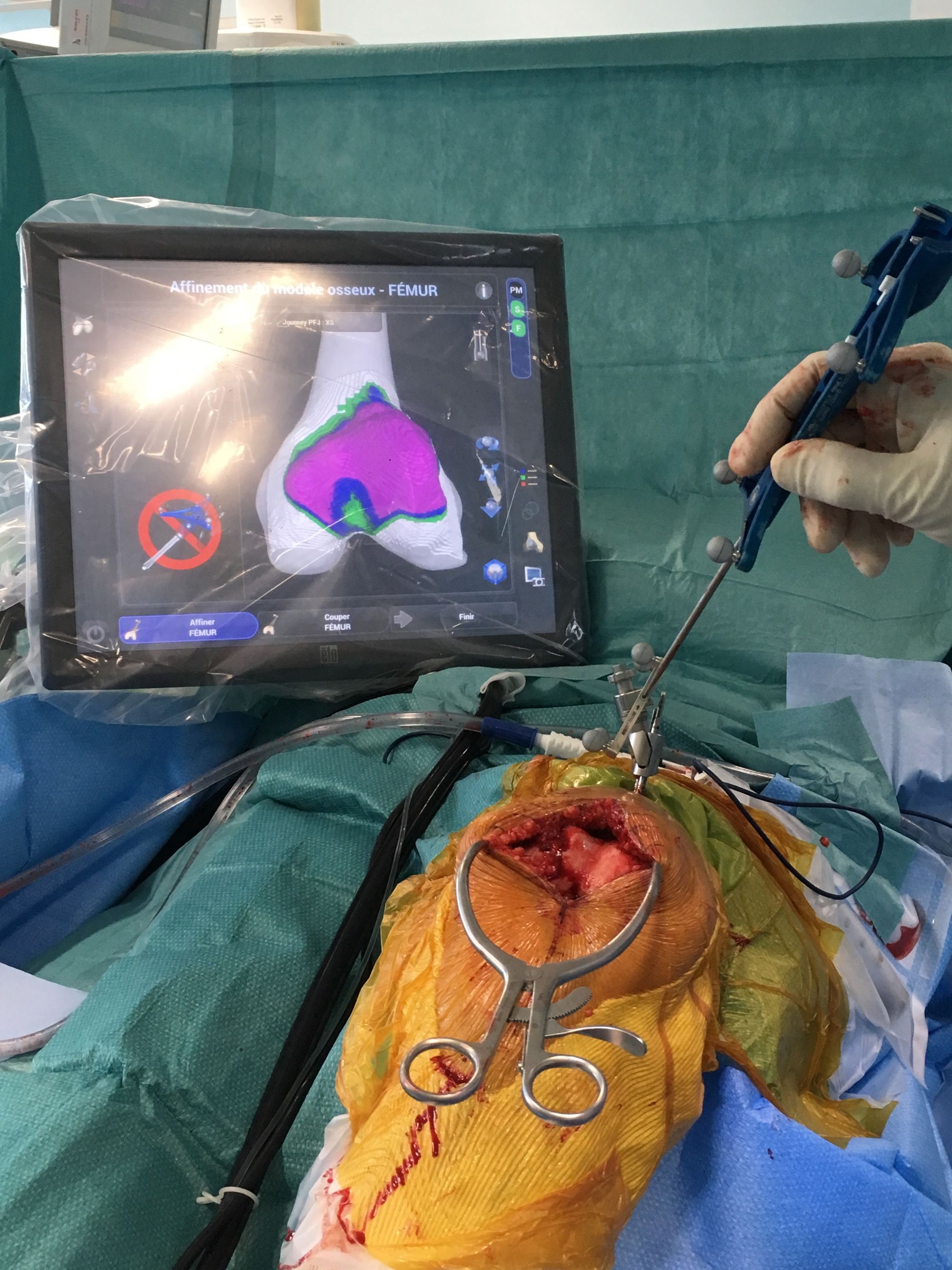 * a touchscreen monitor with sterile drapes. The monitor should be within easy reach of the surgeon and is usually placed by the hip opposite the knee to be operated;