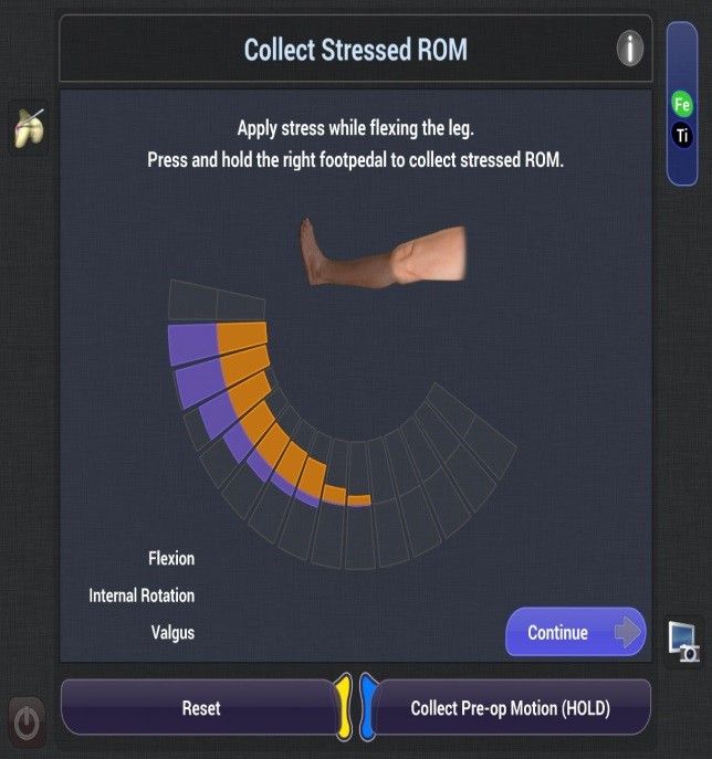 Soft tissue balancing and release can be checked and refined during the data collection phase. Alignment and any ligament gap or retraction are measured across the whole range of motion.