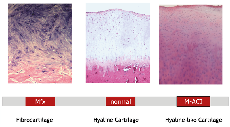 The old adage “hyaline cartilage does not repair” continues to hold true and should be communicated to patients, despite all modern cartilage restoration procedures. Whilst all surgery tech-niques including the latest generation of modern autologous chondrocyte transplantation (ACT) allows replacing the cartilage defect with a similar, histologically high-quality (hyaline-like) structure, this transplant is not identical to natural cartilage (Fig 3).