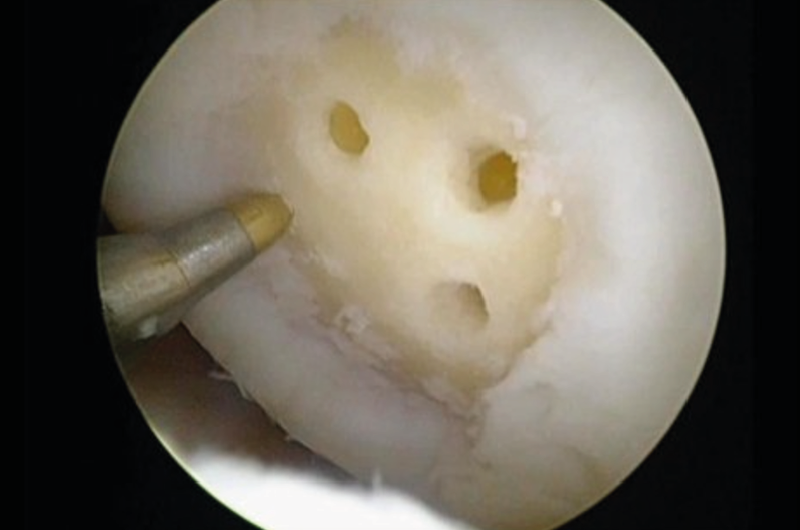 The common larger chondro picks tend to result in confluent fine subchondral fractures and increase the risk of intralesional osteophyte formation (Fig. 15) and subchondral cyst formation.