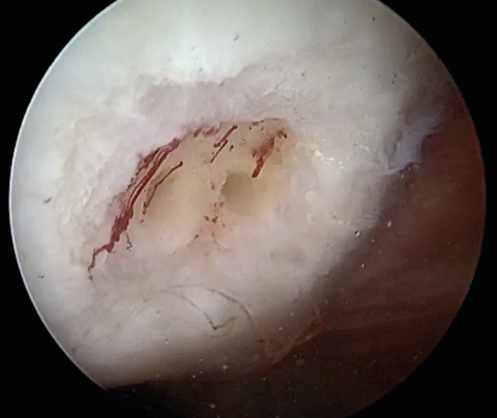 In practice, care must be taken to clean up the subchondral calcifying layer without grossly damaging the subchondral lamella (Fig. 12).