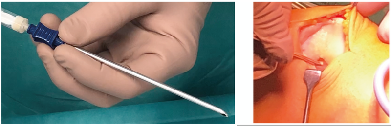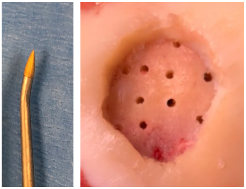 If possible, the use of finer grade reamers called “nano fracturing”, (Fig. 13) or low-speed microdrilling (Fig. 14) with K-wires (1.0−1.6 mm) should be favoured.