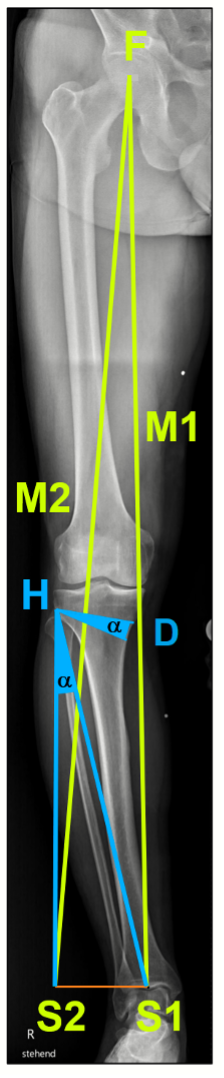 Despite careful preoperative planning of the osteotomy size the weight line must therefore be marked and checked during surgery with the image intensifier. The alternative is control via computer-assisted navigation, which has also been tried and tested in our hands.