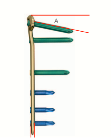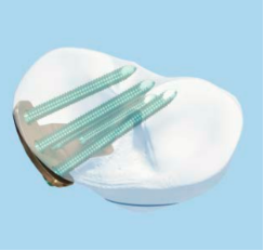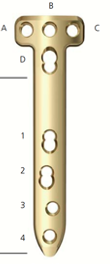 For the osteosynthesis we use the Tomofix plate with locking screws (Depuy-Synthes). Now the Tomofix plate is fitted with distance spacers in positions D and 3 or 4 (Fig. 8a).