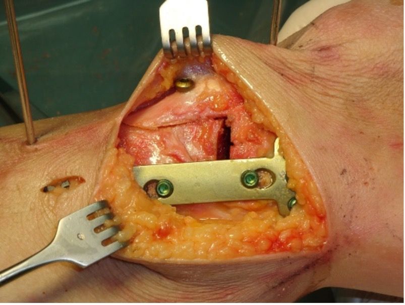 To prevent damage in these cases it is necessary to introduce a Hohman retractor or a special retractor under image intensifier control during the operation directly on the posterior bone along the osteotomy plane up to the lateral edge. Damage to the anterior tibial artery can cause a pseudoaneurysm and this might manifest as attenuation or absence of the dorsal pedal artery pulse. Therefore, preoperative and postoperative monitoring of the dorsal pedal artery pulse is very important.