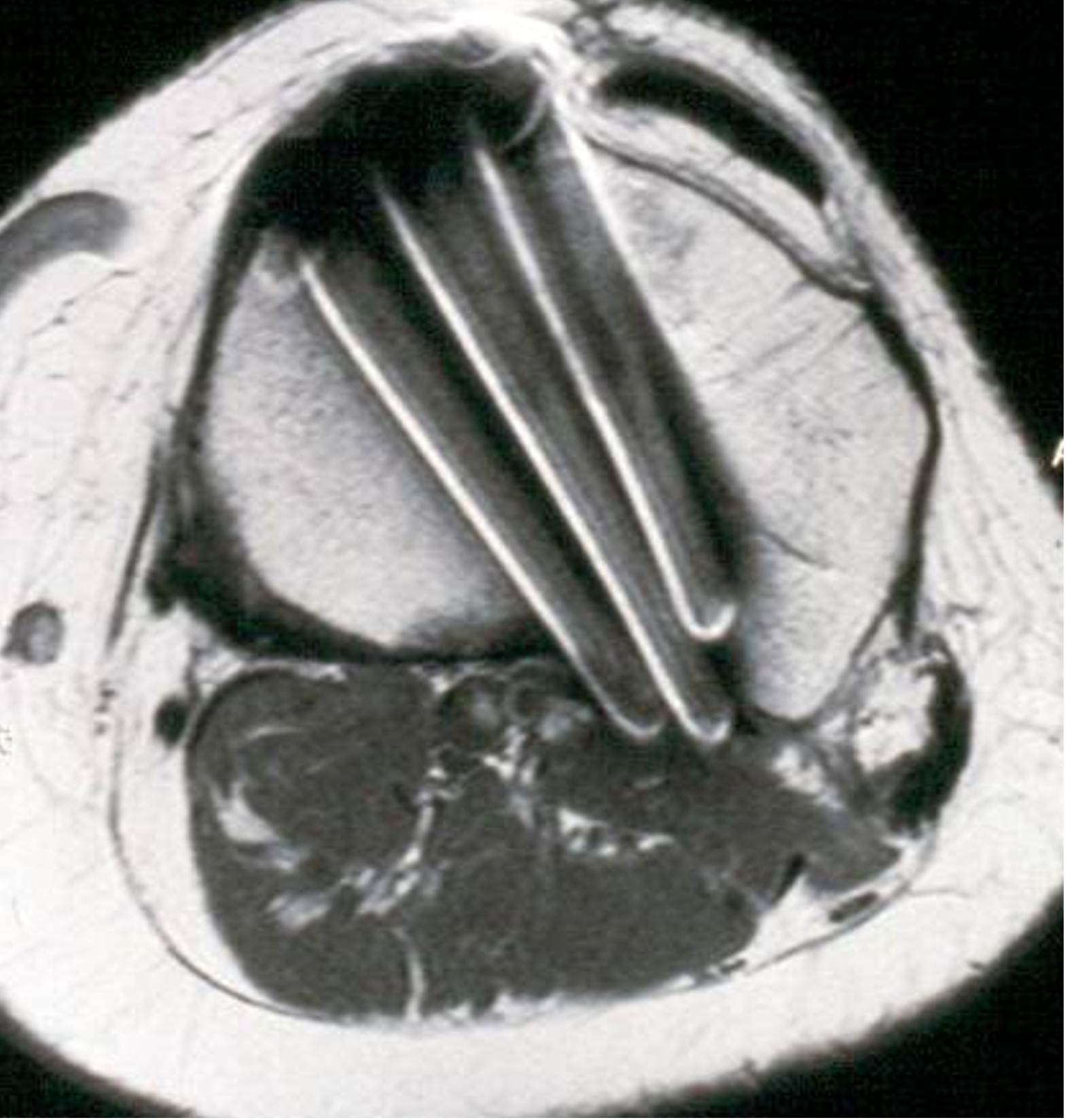 Arterial vascular complications: Klecker [33] reported in an MRI-based study of 1116 knee MRIs a 2.1% incidence of a high branching of the anterior tibial artery before the popliteal muscle with direct proximity to the posterior cortex of the lateral tibia (Fig. 10).