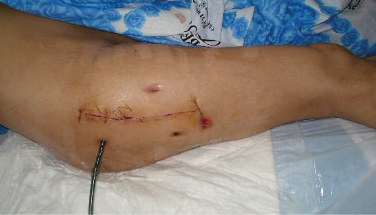 Necroectomy was carried out. The wound was drained with a tube. Sutures were placed on the fascia, subcutaneous tissue, and skin. The wound healed primarily (Figure 5).
