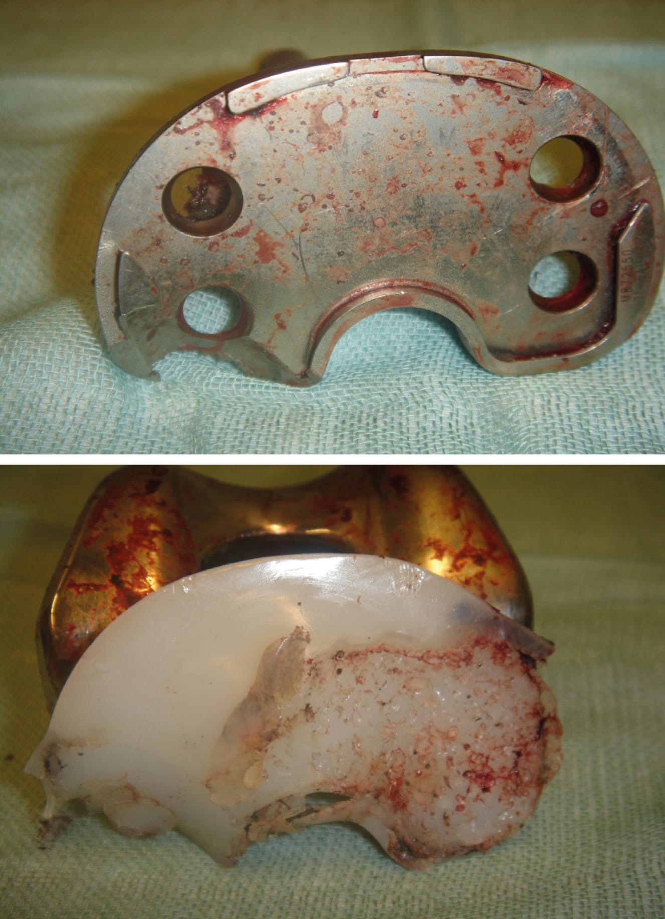 Total Knee Replacements (TKRs) are subjected to very significant mechanical and chemical stresses. In revision surgery, the level of constraint and the modularity of the system implemented to address bone defects, ligamentous instability, etc., add to these stresses. The extensive use of orthopaedic cement, which has limited mechanical strength, will add significant mechanical stress to the implants, increasing their degree of wear. The human biological environment plays an important role in the corrosion of implants, particularly in the presence of inflammation.