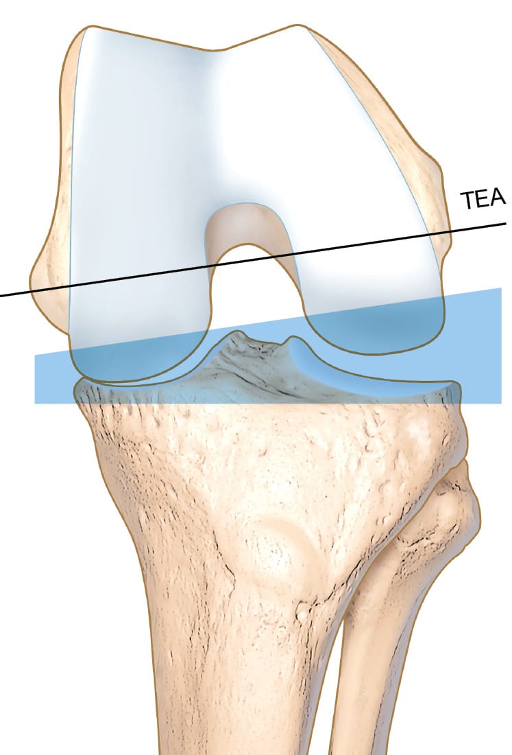 - The orientation and height of the joint line, to be restored by accurately reproducing the pre-arthritic tibial anatomy and using the femur to balance the knee, all within well-described limits.