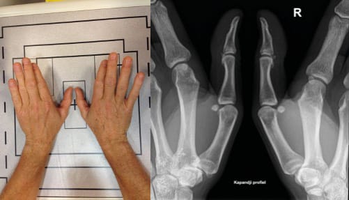 The importance of choosing the right views in the diagnosis of trapeziometacarpal osteoarthritis, or basal thumb arthritis, cannot be overstated [1] Forestier. L’osteoarthrite sèche trapezométacarpienne (Rhizarthrose du pouce). Presse Med 1937; 315 – 7. If the radiology technician has had high quality training, this will lead to a clear and correct diagnosis, which in turn often means non-surgical management for patients with this pathology. By following the adage ‘Don’t treat the pictures, treat the patient’ we ensure that we offer, through radiology that is performed well, treatment that is useful to our patients. It is important to remember that sometimes patients with radiographs showing minimal TMC involvement can be in more pain (Figure 10) than patients at the most advanced stage of degene18ration (Figure 13). Finally, history has shown us that of the radiological views that are useful in imaging the degenerative TMC joint, they may not all be French, but they originate almost exclusively from Europe.