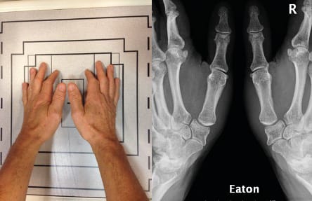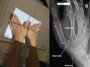 Radiology is often the only technical instrument needed for appropriate management of basal thumb arthritis [1] Forestier. L’osteoarthrite sèche trapezométacarpienne (Rhizarthrose du pouce). Presse Med 1937; 315 – 7. Traditional radiology of the thumb base presents challenges as it is complex to perform, but this is sometimes not appreciated by either radiologists or referring doctors