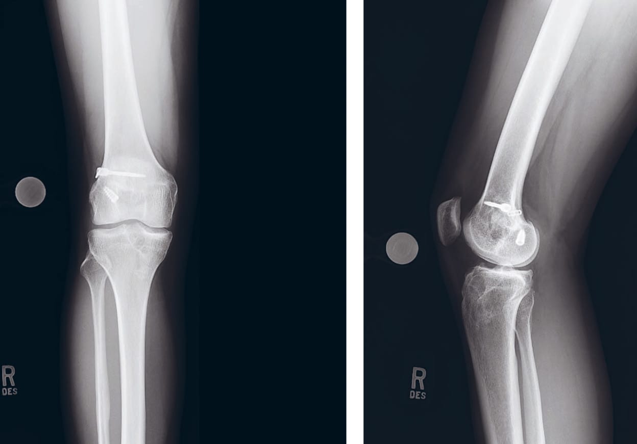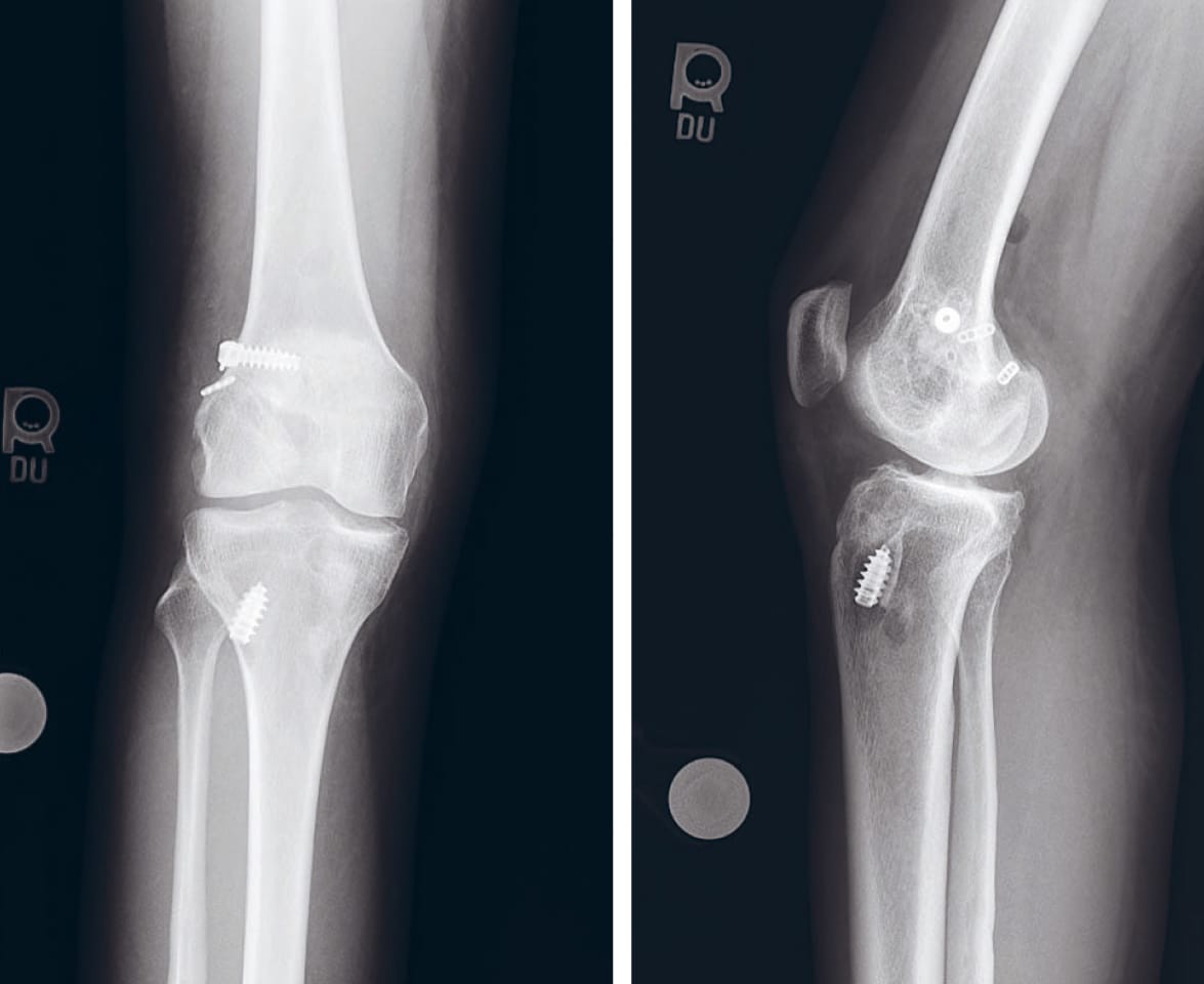 A two-stage reconstruction was indicated, given the patient’s severe tibial tunnel expansion to 23mm. For the ACL, a contralateral patellar tendon autograft was recommended. For the first stage of the two-stage reconstruction, bone grafting with allograft as well as hardware removal for the metal femoral screw was recommended. The second stage would be a contralateral patellar tendon autograft reconstruction with lateral extra-articular iliotibial (ITB) band tenodesis.