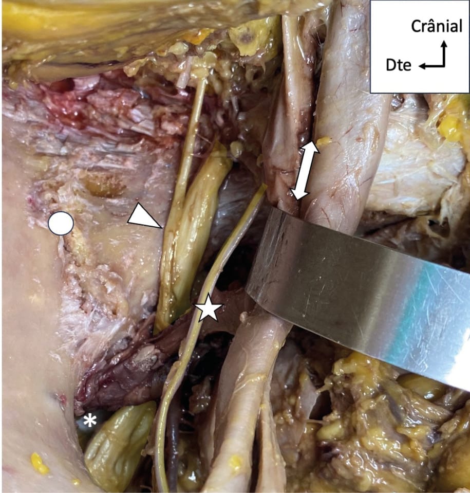 Beyond the hip joint violation for column and periacetabular screw fixation, the surrounding anatomical structures at risk during percutaneous surgery are primarily neurovascular. The iliac vascular network is rich and often close to the corridors. We will notably mention the superior gluteal pedicle and common iliac vein, particularly exposed during iliosacral or trans-sacral screw fixation [1], Tonetti J, van Overschelde J, Sadok B, Vouaillat H, Eid A. Percutaneous ilio-sacral screw insertion. Fluoroscopic techniques. Orthop Traumatol Surg Res 2013;99:965–72. https://doi.org/10.1016/j.otsr.2013.08.010.[12] Collinge C, Coons D, Aschenbrenner J. Risks to the superior gluteal neurovascular bundle during percutaneous iliosacral screw insertion: an anatomical cadaver study. J Orthop Trauma 2005;19:96–101. https://doi.org/10.1097/00005131-200502000-00005., as well as the femoral artery located near the anterior column corridor and the entry point of the LC2 corridor [5] Starr AJ, Borer DS, Reinert CM. Technical aspects of limited open reduction and percutaneous screw fixation of fractures of the acetabulum. Oper Tech Orthop 2001;11:218–26. https://doi.org/10.1016/S1048-6666(01)80008-2.. Regarding neural structures, we will discuss the lumbosacral trunk, formed by the 5th and 4th lumbar roots, which descends while molding itself to the anterior surface of the sacral wing, to which it adheres through fibrous connective tissue. Along with the first sacral roots S1 and S2, these nerves are vulnerable during iliosacral or trans-sacral screw fixation. The sciatic nerve, as it wraps around the posterior column through the greater sciatic notch, is exposed during retrograde posterior column screw fixation, as is the posterior femoral cutaneous nerve. Finally, it is worth mentioning the lateral femoral cutaneous nerve, which can be injured by LC2 screw fixation after passing under the inguinal ligament (Figure 2). The genital structures at risk in women are the glans and body of the clitoris as well as surrounding sensory nerve branches, and in men, the cavernous bodies and spermatic cords [11] Hadeed M, Heare A, Parry J, Mauffrey C. Anatomical Considerations in Percutaneous Fixation of the Pelvis and Acetabulum. J Am Acad Orthop Surg 2021;29:811–9. https://doi.org/10.5435/JAAOS-D-21-00066.. These structures are at risk of injury during retrograde anterior column screw fixation.