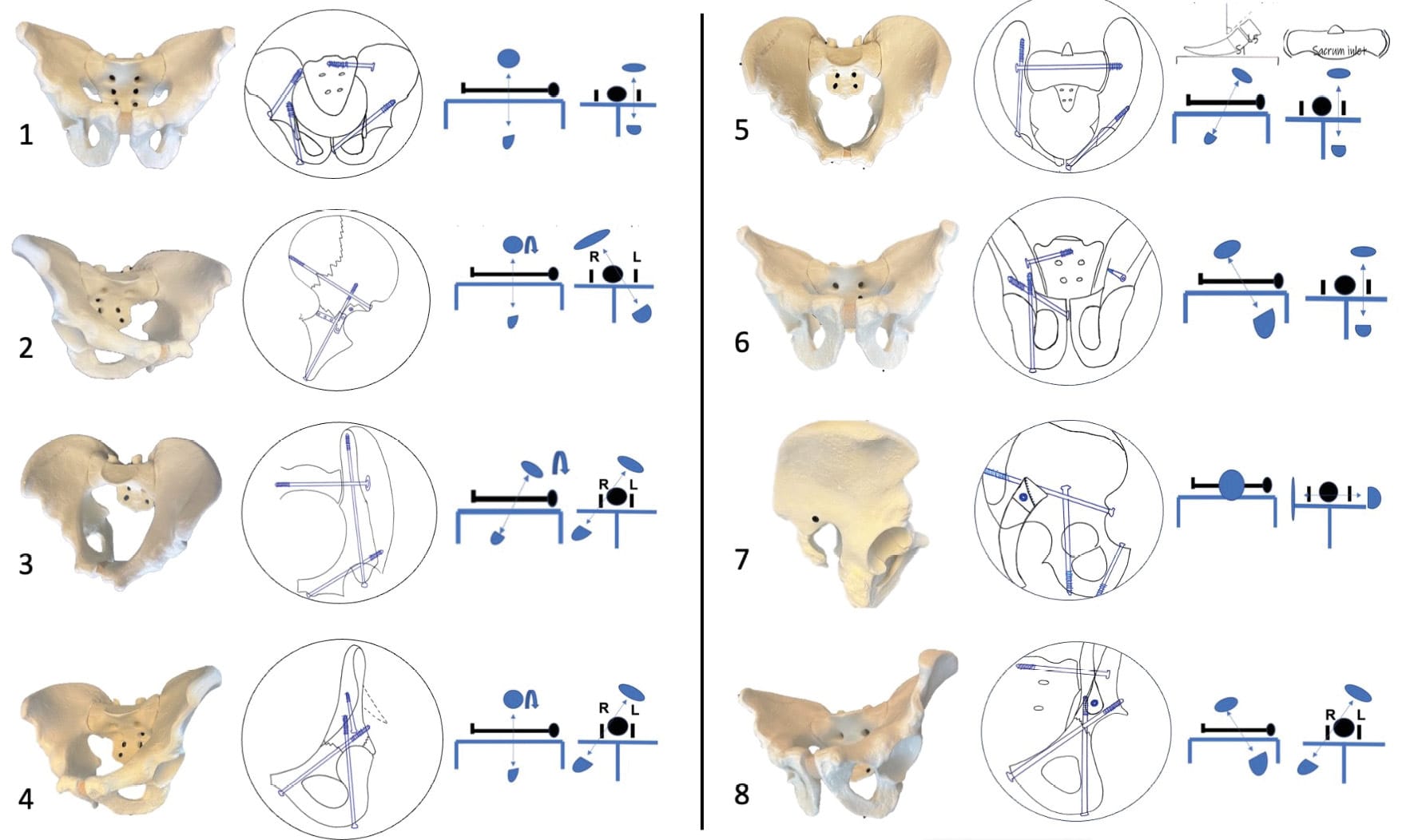 Ilio-Sacral (IS) and Trans-Sacral (TS) screw fixation