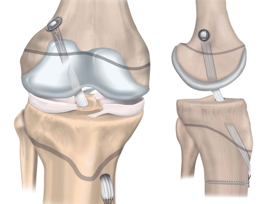 - In view of the risk of growth disturbances secondary to grafting of the patellar ligament, it is better to use a tendon graft.
