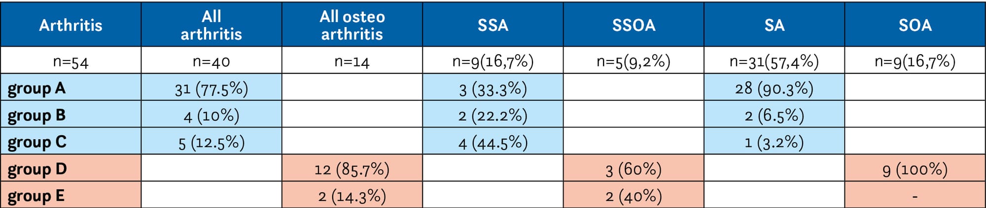 - Positive results in patients with SA were 90.3%, in SSA - 33.3%, in SOA - 100%, and in SSOA - 60%.