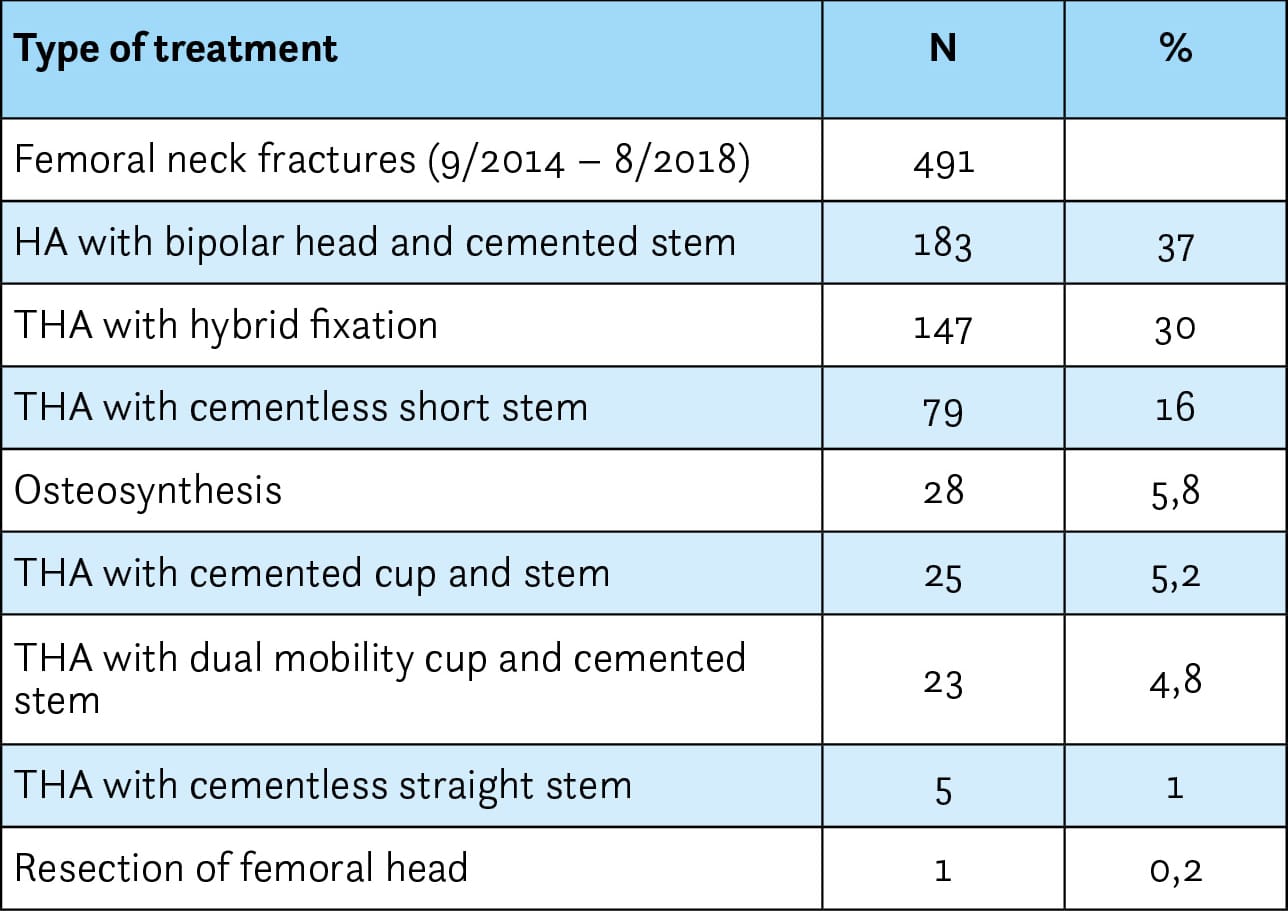 In 2008 a German survey showed a wide local range for the use of osteosynthesis between 19 and 78,6% in Northrhine-Westphalia (Smektala et al. 2008). There was also a great variance between the use of HA or THA depending on the surgeons speciality (general surgeon, trauma surgeon or elective orthopedic surgeon), which is also confirmed in the U.S. (Woon et al. 2017).